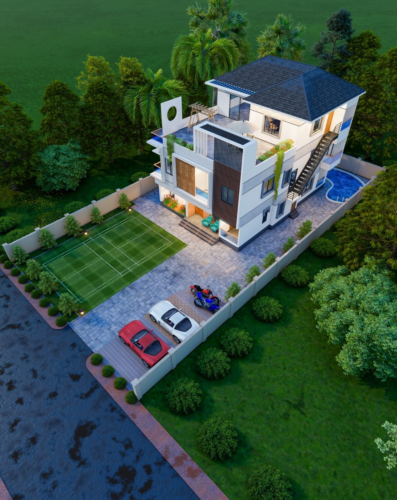 • Bedrooms- 3nos ( Attached Verandah)